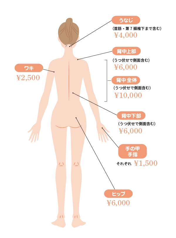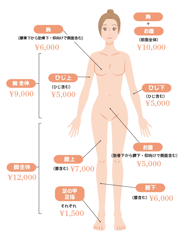 - 5ミリ以上の毛の長さ、または産毛であれば全身お手入れ可能